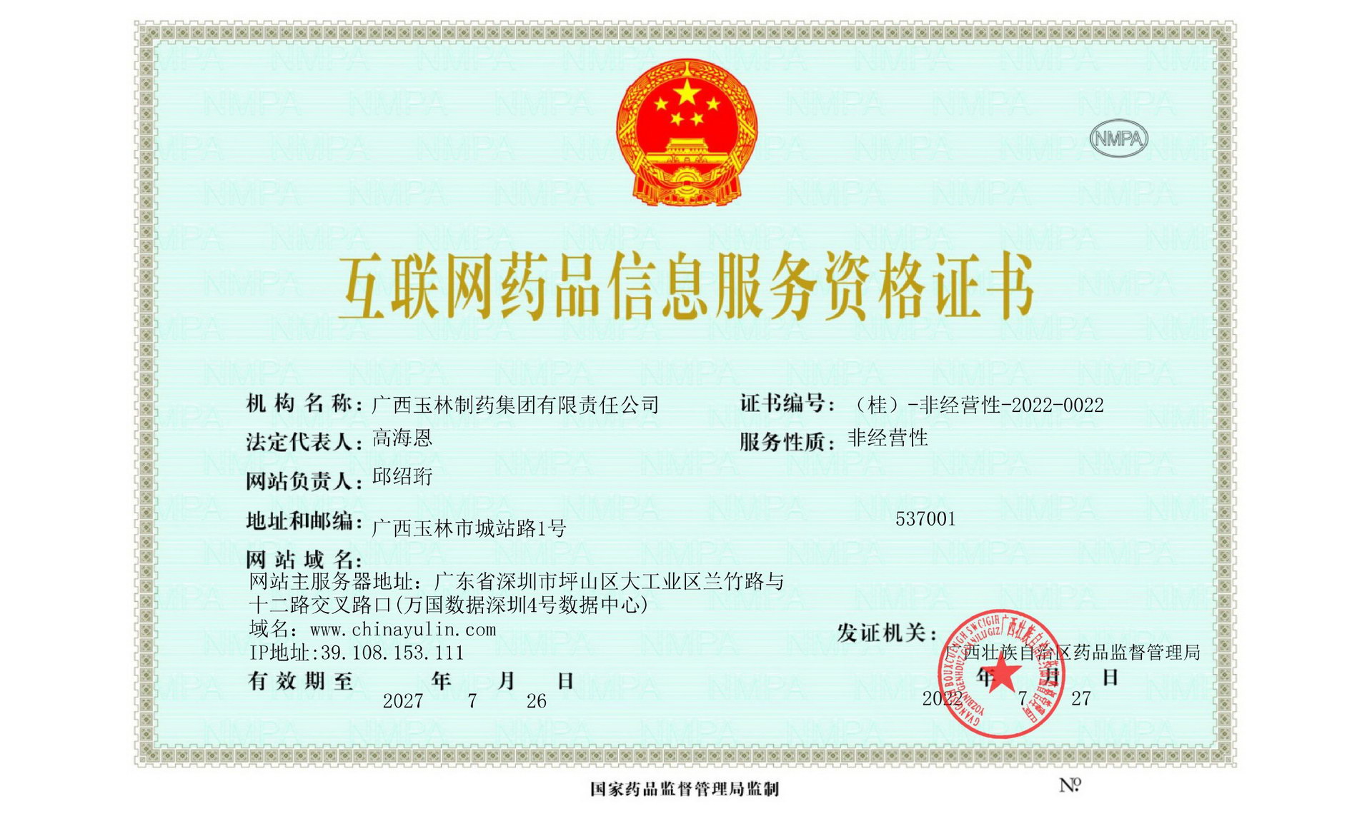 桂ICP備10202522號-1 廣西玉林制藥集團有限責任公司